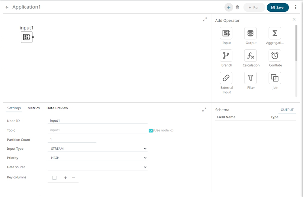 Also, the corresponding Operator Properties and Schema are displayed in the Application page.