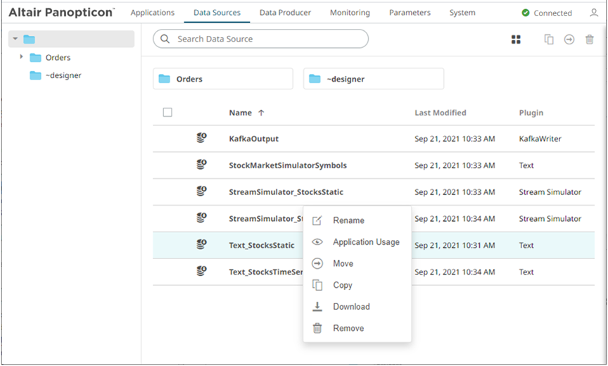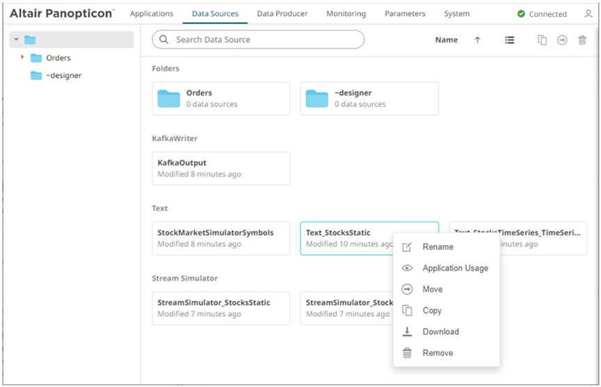 Folders and data sources can be displayed either on a List or Grid View. By default, the folders and data sources are displayed in the List View.