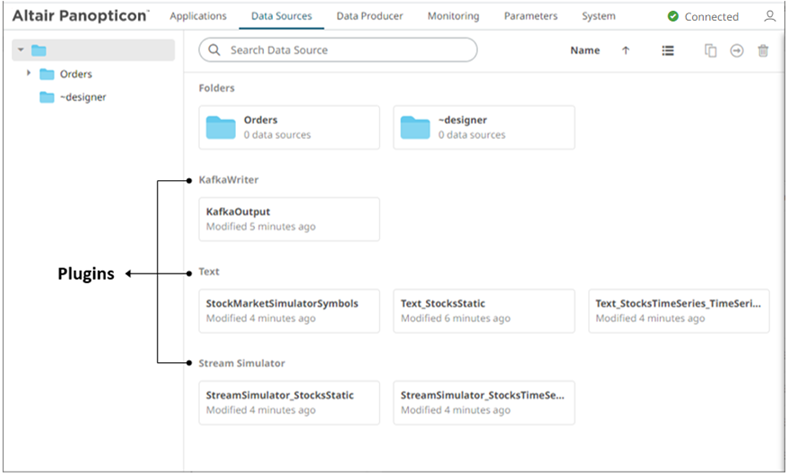 Data Sources are placed under their corresponding plugin.