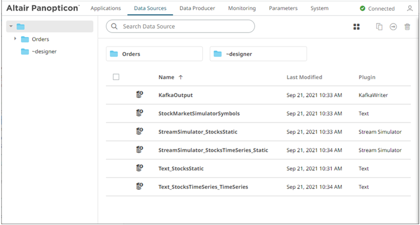 Folders and Data Sources Display View