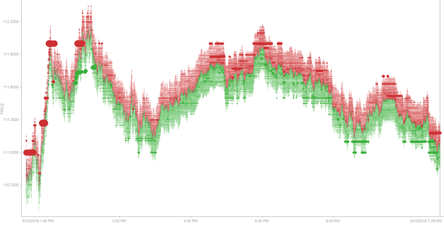 Figure 2-35. A time series scatter plot (Trade volume with best bid and offer).