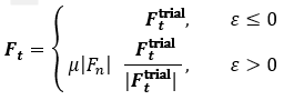 In the absence of any bonds - if they were never formed or previously met one of the failure criteria and broke - the normal contact force is calculated only when the contacting elements are compressed. In this instance, the normal contact force and associated damping force remain the same as defined previously: