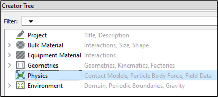 8. Click the  icon to view a list of all possible interactions for Particle to Particle or Particle to Geometry contacts.