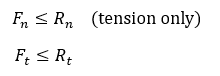 where Rn and Rt are the normal and shear strengths (defined by the user). The bond will  break under one of the following conditions: