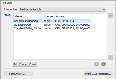 To use the Linear Elastic Bonding Model, you must first add it to the Physics of a given EDEM simulation and then configure as required.