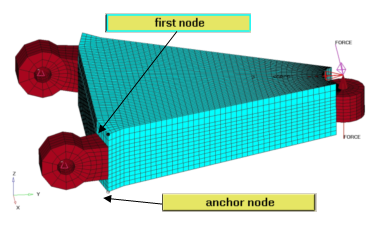 - SUBCASE 1: The resultant displacement of the point where loading is applied must be less than 0.05 mm.