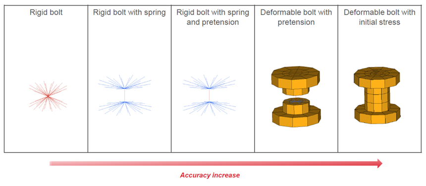 There are different ways for modeling bolt connection, and more detailed model accuracy of the
