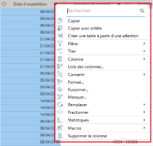 Pour trouver rapidement une opération que vous voulez appliquer à la colonne sélectionnée, utilisez la barre de recherche.