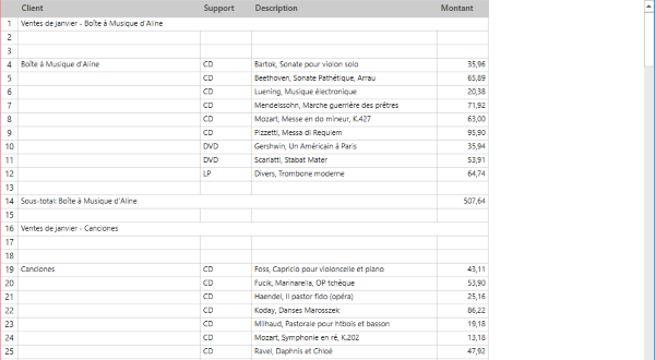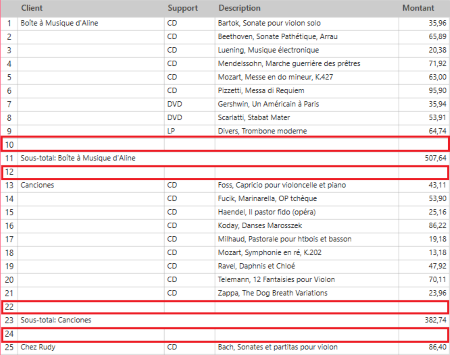 Ajout de lignes blanches après une ligne d’en-tête dans un récapitulatif