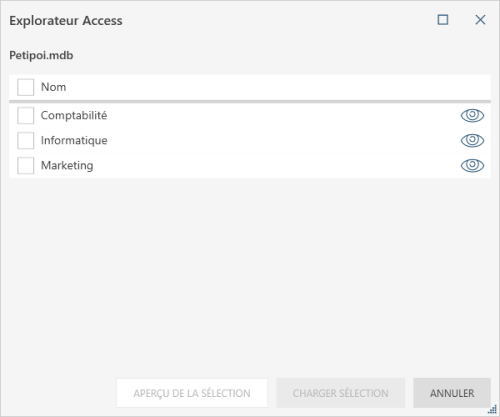 Voici, par exemple, l’explorateur Access :