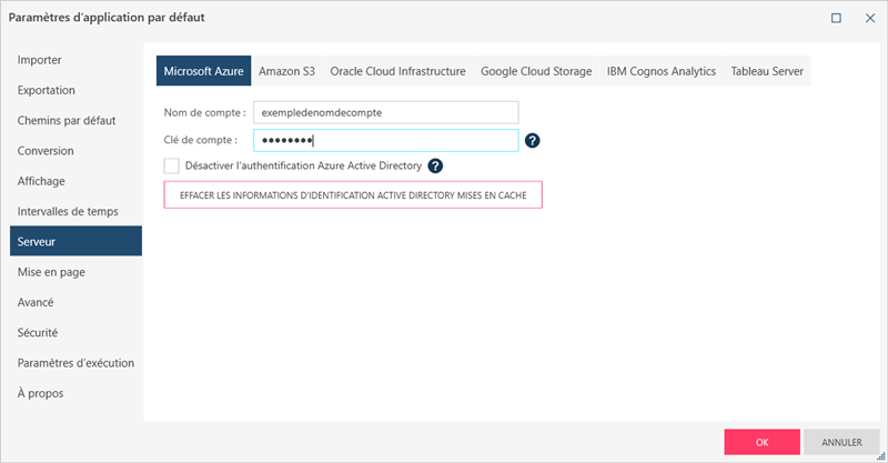 vous devez d'abord définir les informations d'accès dans l'onglet 'Serveur' des Paramètres de l'application :