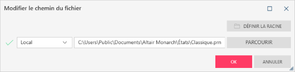 ATTENTION : Si vous modifiez le chemin de fichier d'un nœud d’état Monarch, la boîte de dialogue Modifier le chemin du fichier affiche les chemins de tous les états (locaux et web) chargés dans ce nœud.