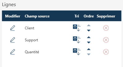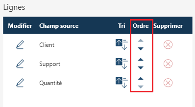 Modifiez l’ordre des valeurs en cliquant sur les boutons permettant de les déplacer vers le haut/le bas dans la colonne Ordre des volets Lignes/Éléments/Mesures.