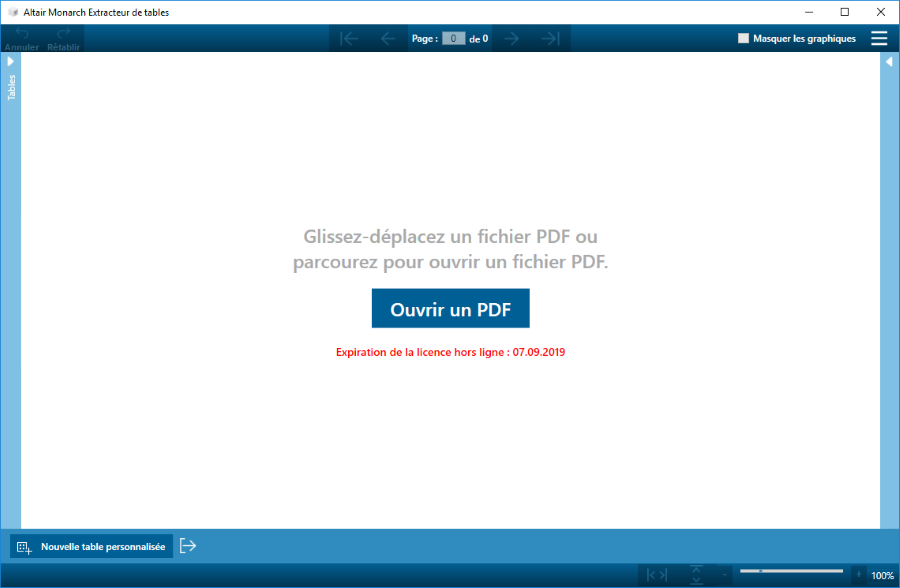 Quand votre licence est en mode retrait, des indicateurs sont affichés sur les pages d’accueil de Data Prep Studio et Monarch Extracteur de tables pour vous rappeler quand vous devez retourner votre licence.