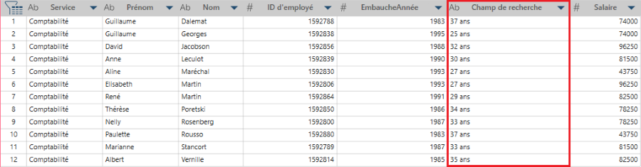 Créer une nouvelle colonne contenant des valeurs de recherche