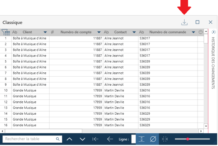 La table est séparée de l’interface principale et vous pouvez la déplacer où vous souhaitez à l’écran, même sur un deuxième écran si vous en avez un.