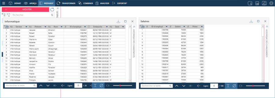Monarch Data Prep Studio vous permet de détacher une table de l'interface principale. Cela vous permet de :