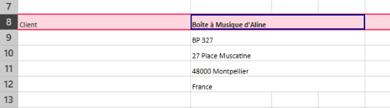 Dans notre exemple, l’adresse s'arrête à une cellule vide.
