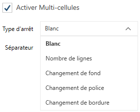 Le type d’arrêt indique à la conception de feuille de calcul la fin de la valeur multi-cellules. Il peut s’agir de :
