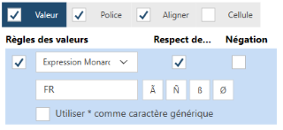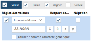 En plus des règles de valeur, vous avez également la possibilité de sélectionner les options suivantes :