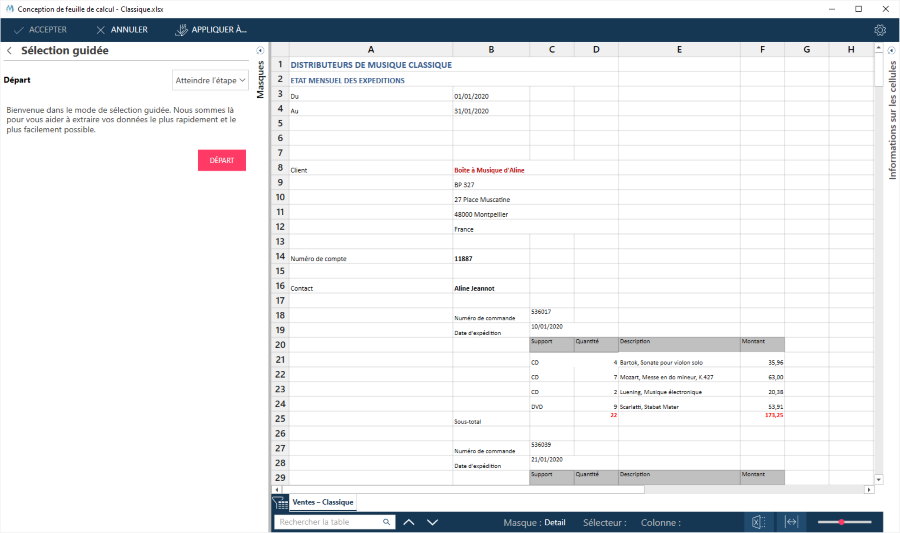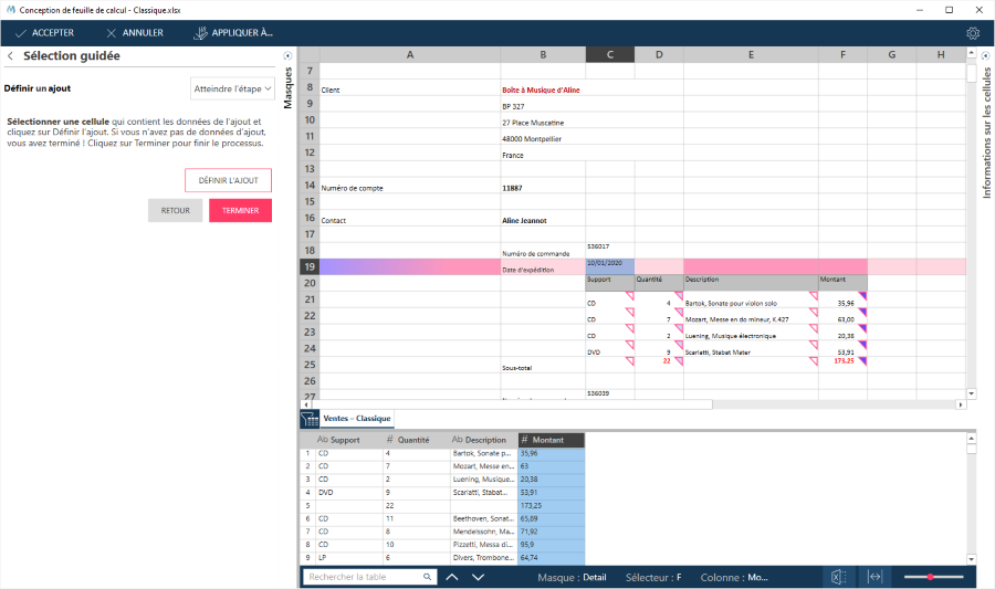 Avec cette méthode, vous sélectionnez ou désélectionnez les lignes de détail et l’assistant essaie d’ajuster les sélecteurs pour satisfaire vos critères de sélection.
