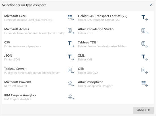 La boîte de dialogue Sélectionner un type d’exportation s’ouvre.