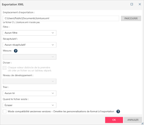 En l’absence de colonnes correspondantes, l’exportation s’annule et l’utilisateur est informé des résultats.