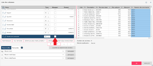 Cochez la case Masquer en regard de la colonne que vous voulez masquer.