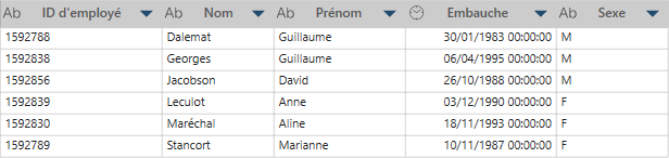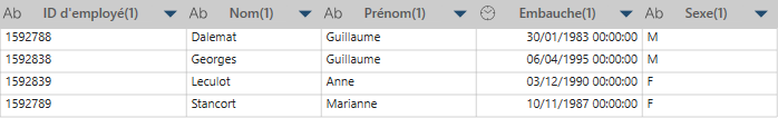 Une jointure négative droite affichera uniquement les enregistrements pour les employés suivants :