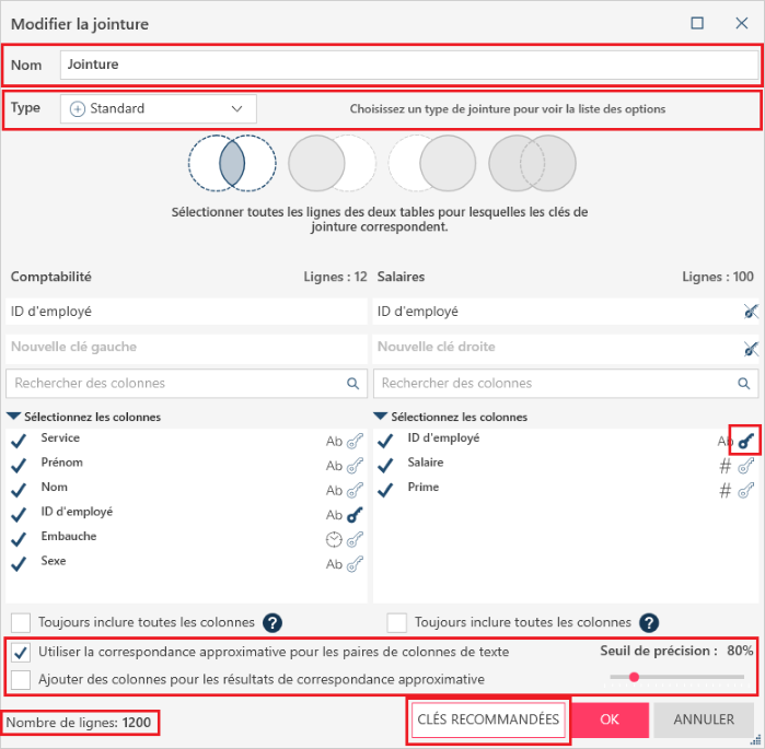 Dans la boîte de dialogue Modifier la jointure, sélectionnez Clés recommandées.