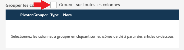 Vous pouvez choisir plusieurs colonnes à regrouper. Si vous voulez grouper sur toutes les colonnes, cliquez sur la case Grouper sur toutes les colonnes en haut du panneau Grouper les colonnes :