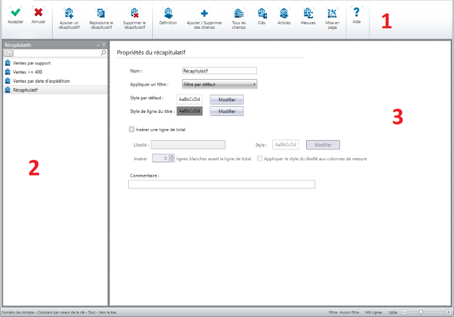 Affiche les propriétés du récapitulatif actuellement sélectionné. |