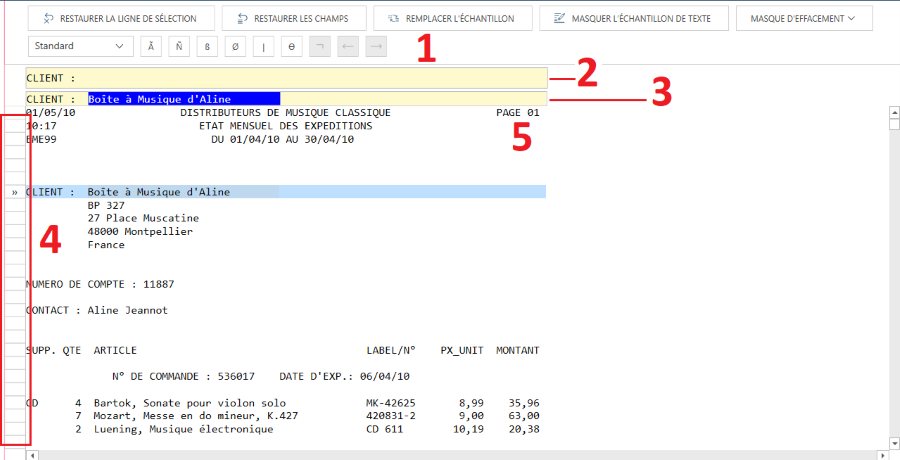 [ 4 ] Zone de sélection de ligne |