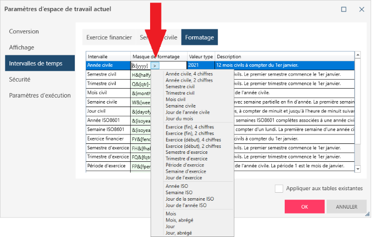 le masque de formatage, double-cliquez sur le masque d’intervalle