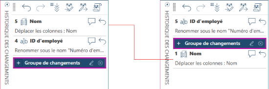 Vous pouvez regrouper plusieurs modifications apportées à une même colonne ou plusieurs instances d’une même modification dans des groupes afin d’éviter de créer des listes d’historique des modifications trop longues.