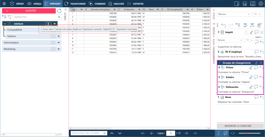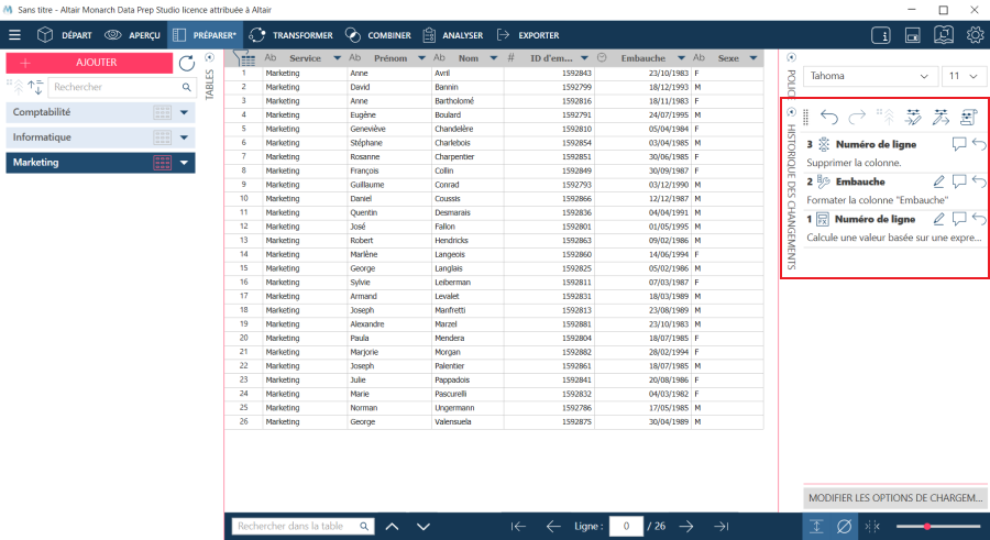 Data Prep Studio permet de réorganiser les changements comme bon vous semble dans la liste d’historique des changements.