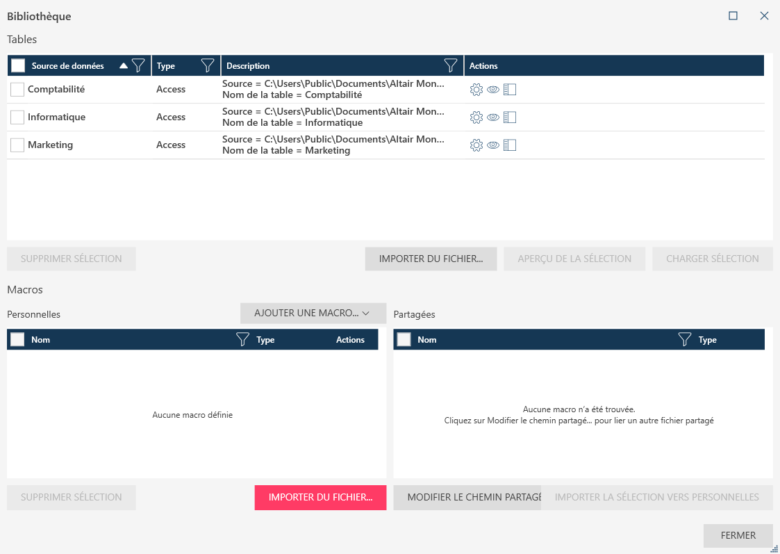 Ces sources de données sont listées dans la boîte de dialogue Bibliothèque.