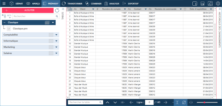 Affichage des données extraites dans Monarch Data Prep Studio