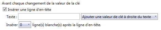 Pour insérer des lignes blanches après une ligne de sous-total ou après un changement de la valeur de la clé, cochez la case Insérer une ligne de sous-total.