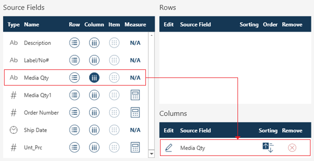 If you change your mind and no longer wish to use the selected field as a row, remove it from the Rows panel by clicking on the Remove icon to its right.