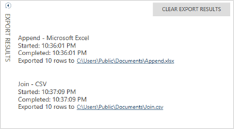 You can erase all export results from this panel by clicking on the Clear Export Results button located at the top right-hand corner of the panel.