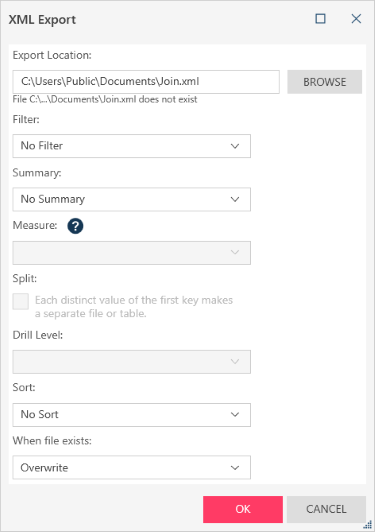This setting specifies what Data Prep Studio should do if a file with the same name exists in the folder you specified in the Export As field. Select an action if the export file already exists: