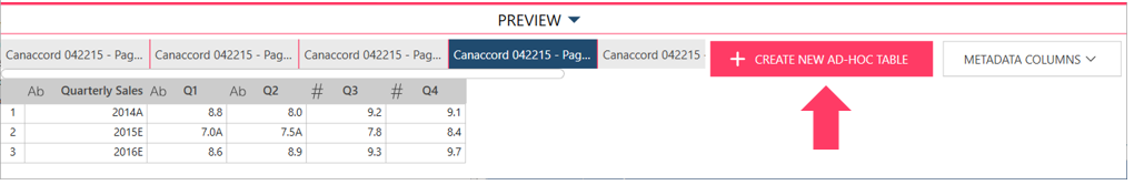 You can define ad-hoc tables in the table panel. Ad-Hoc tables are tables whose properties and values you define on the fly.