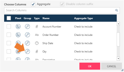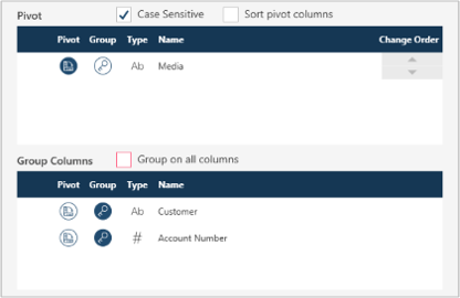 To make Customer a pivot column instead of a group column, click the pivot icon beside it on the Group Columns section.