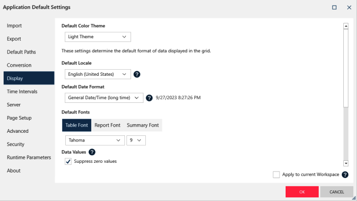Application Default settings allow you to specify global (i.e., application-level) work settings for Monarch Data Prep Studio.
