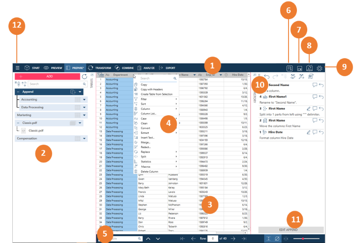 Prepare allows you to transform columns, using Prep Data operations, to prepare your data for subsequent analysis.