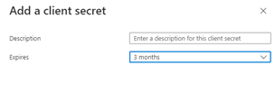 In Add a client secret, provide a description for the secret key, and set its expiration.
