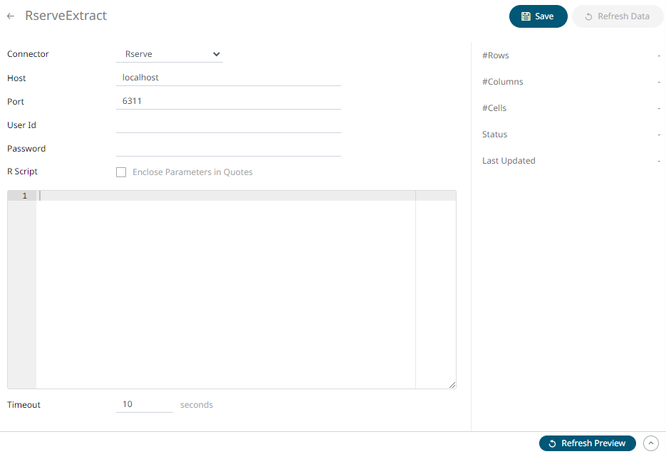 1. On the New Data Extract page, select Rserve in the Connector drop-down list.