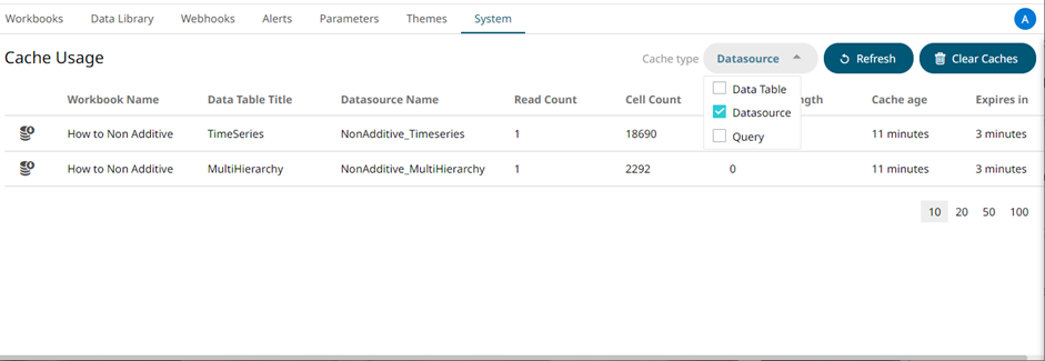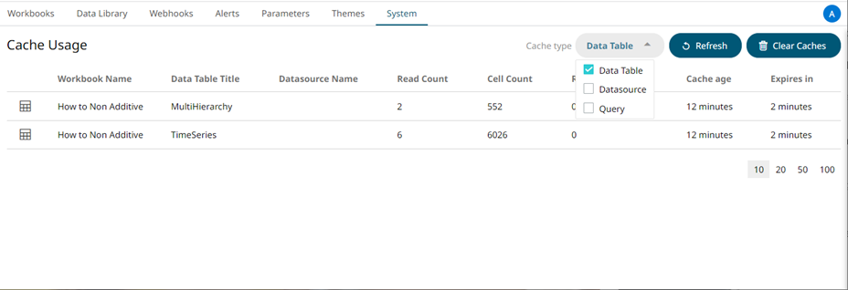 Select a Cache Type to display in the list.