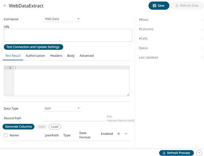 1. On the New Data Extract page, select Web Data in the Connector drop-down list.